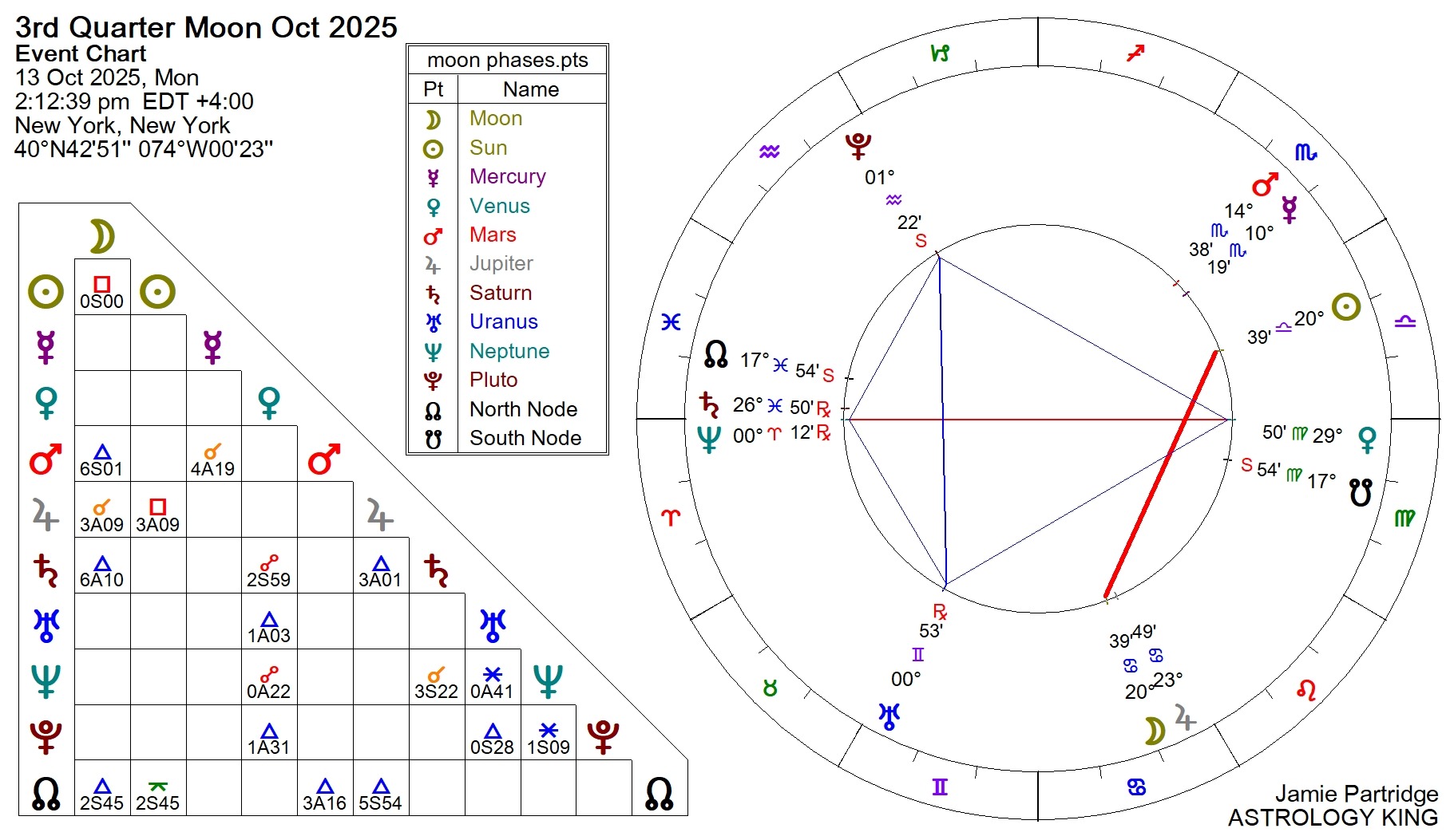 Oct 13 | 14:12 | 3rd Quarter Moon Oct 2025 | 20♋40 |