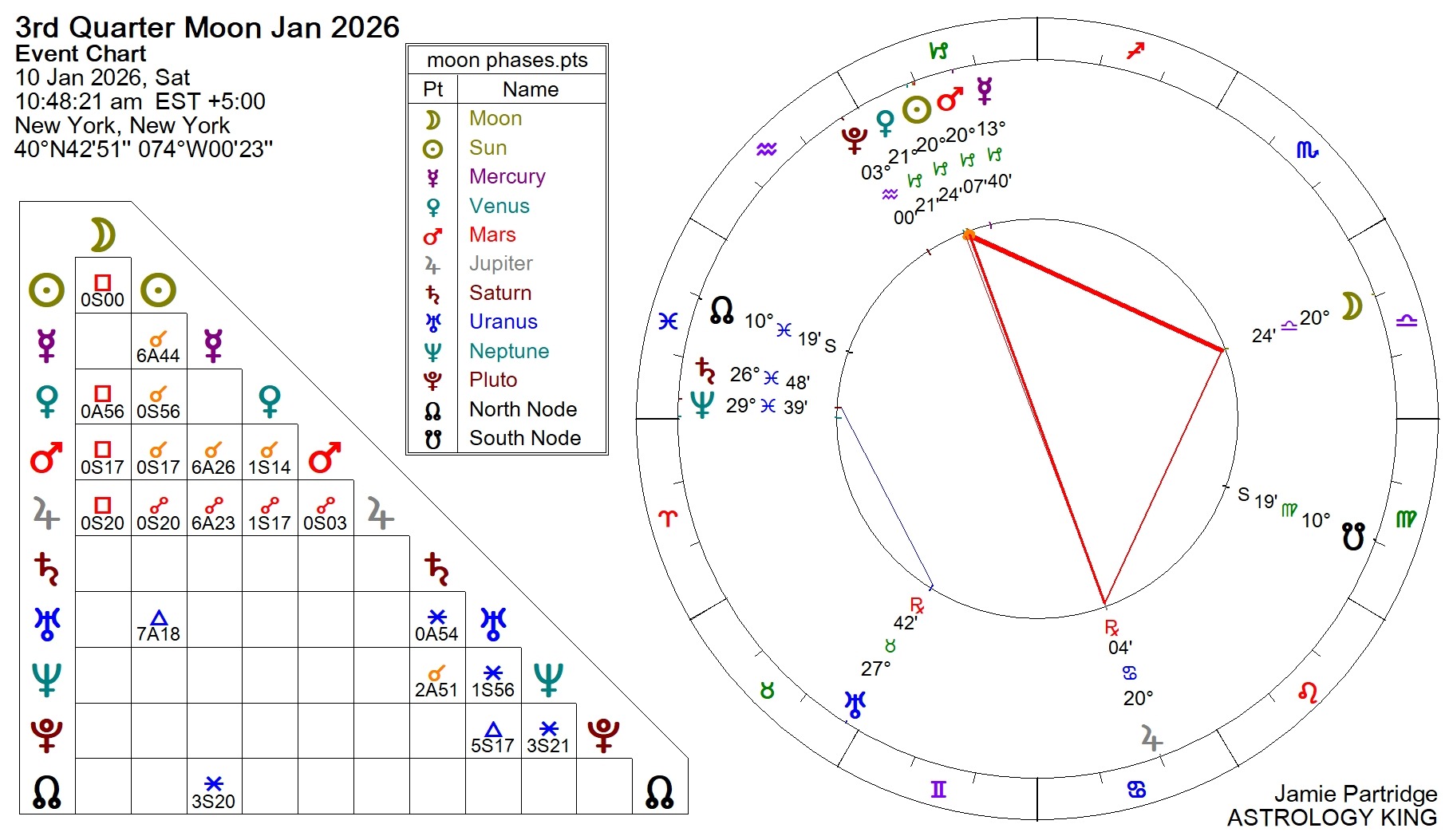 | Jan 10 | 10:48 | 3rd Quarter Moon Jan 2026 | 20♎25 |