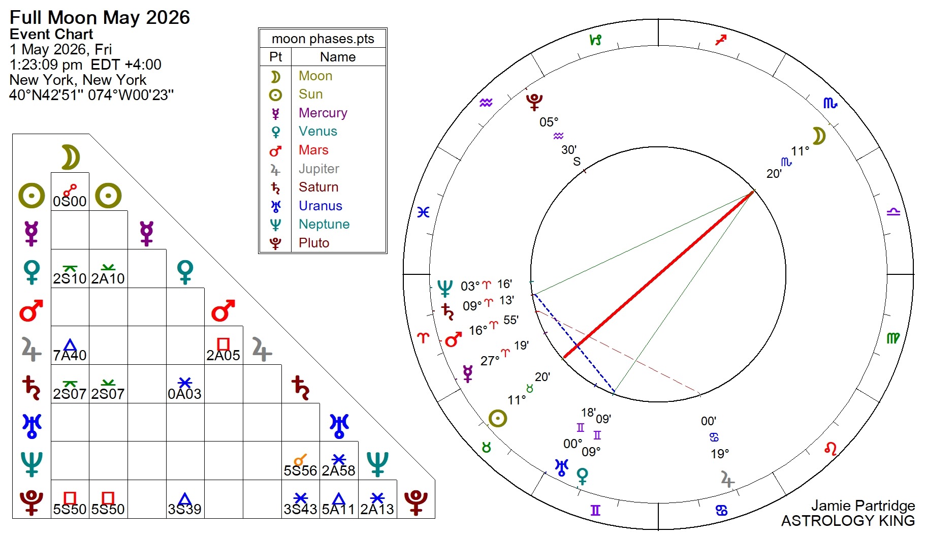 - Apr 23, 10:31 pm – 1st Quarter Moon at 03♌56.